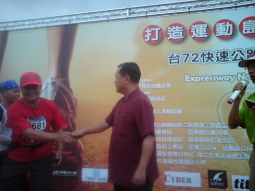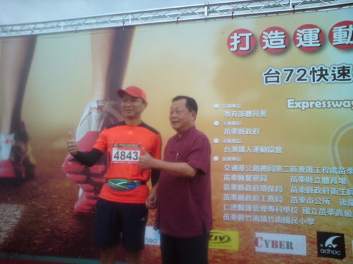 清晨五點出發,到達苗栗體育場是可以很順暢的,但基於本月收到四月七日參加苗栗孔聖盃馬拉松回程的超速紅單,而且是超速二十公里以上,罰鍰加了五百元,共繳三千五百元。哀痛不已,所以,這趟出門就必須自愛許多。其實寶箴開車並不擅長超速,后里以北限速從110公里降為100公里是一個大陷阱,然後三義的大下坡,會讓人預料不到。想2003年工作由新竹調到中部,連續通車每日來回新竹、台中間也不曾被超速照相。就是稅一定是繳得太少,所以,此方面也是一種彌補國家吧。
